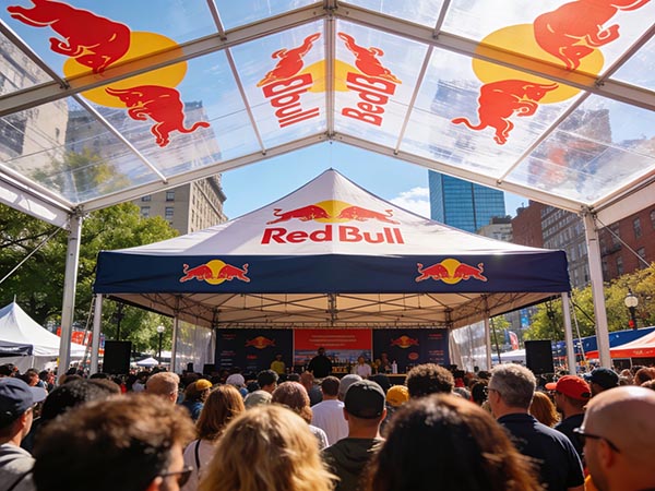 Faltpavillon Werbung Wahrnehmung beschreibt, welche Druckfläche eines Pavillons von welcher Entfernung und in welcher Situation tatsächlich gesehen wird. Dachdruck erzeugt Fernwirkung, Volant wirkt auf Augenhöhe im Nahbereich, Seitenwände werden im Aufenthaltsbereich gelesen – wer das weiß, verteilt Inhalte gezielt statt flächendeckend.